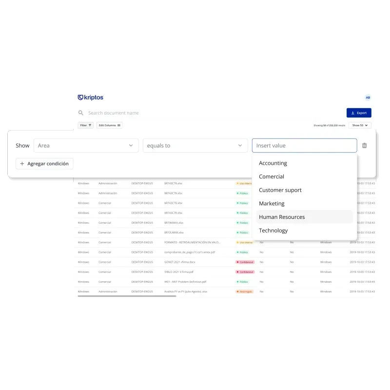 Kriptos personaliza tus algoritmos para adaptarse a las políticas de clasificación de tu empresa, permitiendo clasificar todos tus documentos históricos con un solo criterio.
